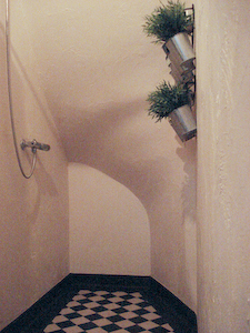 In deze badkamer is gekozen voor een afwerking met stucwerk.